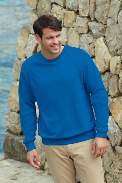 70% Cotone - 30% Poliestere 260 gr/m2 bianco 280 gr/m2 colorato Manica raglan, cuciture a doppio ago, collo con costina in cotone/Lycra, polsino e girovita in costina con Lycra